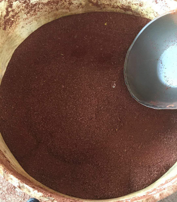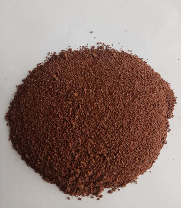 2、固态产品为棕褐色,红褐色粉末,极易溶于水。